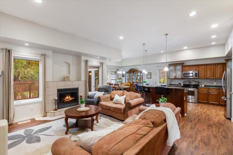 Beautiful family home on quiet street! This home has a inviting entrance, leading to the open concept living room, dining room, and kitchen. The living room features a gas fireplace with great views of the back yard. The dining room has a garden door to the large deck. The kitchen is huge and a dream come true- huge center island and lots of cupboard space! The main floor features 2 bedrooms. The primary suite has a spa - like ensuite bathroom with walk in shower and soaker tub! Walk-in closet. There is a garden door to the back yard, too! Main floor laundry. Moving downstairs, there is a spacious rec room, 2 bedrooms, bathroom with stand up shower, cold room, and utility room. There is a double attached garage, and detached garage. Patio and firepit area, treed yard, partially fenced, and more! Shingles 2020, newer vinyl plank on main floor, HWT, dishwasher, fridge, washer, dryer. Gas BBQ incl. Appliances included, C/A, C/vac, Stamped concrete driveway. Triple pane windows. Hurry!!