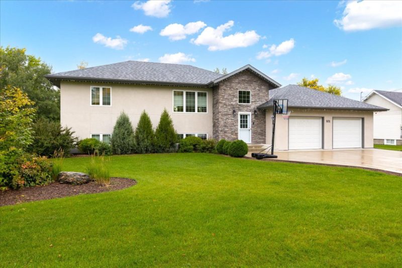 Looking for a well maintained home with upgrades? Look no further! This lovely 4 bedroom home is sure to please! The main floor features luxury hardwood floors and vaulted ceiling throughout. The white kitchen has upgraded quartz countertops and backsplash for a sleek look. There are 2 bedrooms on the main floor, with the ensuite featuring a walk in shower. Moving downstairs, there is a kitchenette, rec room, 2 additional bedrooms, laundry and 3 piece bath with shower. This is a great space to host a movie night, or for elderly parents / adult kids to enjoy. Heated garage. A/C. Acrylic stucco. Moving outside, note the paved drive, beautifully landscaped yard with firepit area, dog run, garden boxes with water taps plumbed in, oversized shed and deck with pergola! This home is on the edge of Grunthal, so enjoy the view of no backyard neighbours! Main upgrades over the last 6 years: hardwood floors, some carpet, countertops in kitchen / baths, kitchen appliances, washer/dryer, Cvac, water softener, most blinds, ensuite shower, downstairs shower, garden boxes, front door, t-bar ceiling and LED lighting in the basement rec room. Call to view!