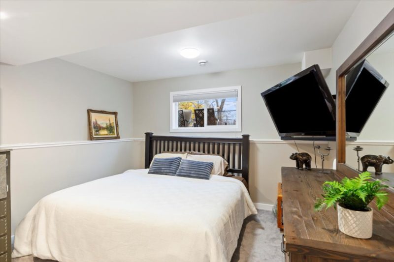 Looking for a well maintained home with upgrades? Look no further! This lovely 4 bedroom home is sure to please! The main floor features luxury hardwood floors and vaulted ceiling throughout. The white kitchen has upgraded quartz countertops and backsplash for a sleek look. There are 2 bedrooms on the main floor, with the ensuite featuring a walk in shower. Moving downstairs, there is a kitchenette, rec room, 2 additional bedrooms, laundry and 3 piece bath with shower. This is a great space to host a movie night, or for elderly parents / adult kids to enjoy. Heated garage. A/C. Acrylic stucco. Moving outside, note the paved drive, beautifully landscaped yard with firepit area, dog run, garden boxes with water taps plumbed in, oversized shed and deck with pergola! This home is on the edge of Grunthal, so enjoy the view of no backyard neighbours! Main upgrades over the last 6 years: hardwood floors, some carpet, countertops in kitchen / baths, kitchen appliances, washer/dryer, Cvac, water softener, most blinds, ensuite shower, downstairs shower, garden boxes, front door, t-bar ceiling and LED lighting in the basement rec room. Call to view!