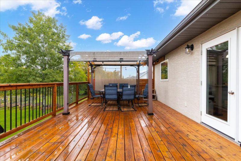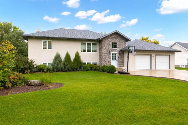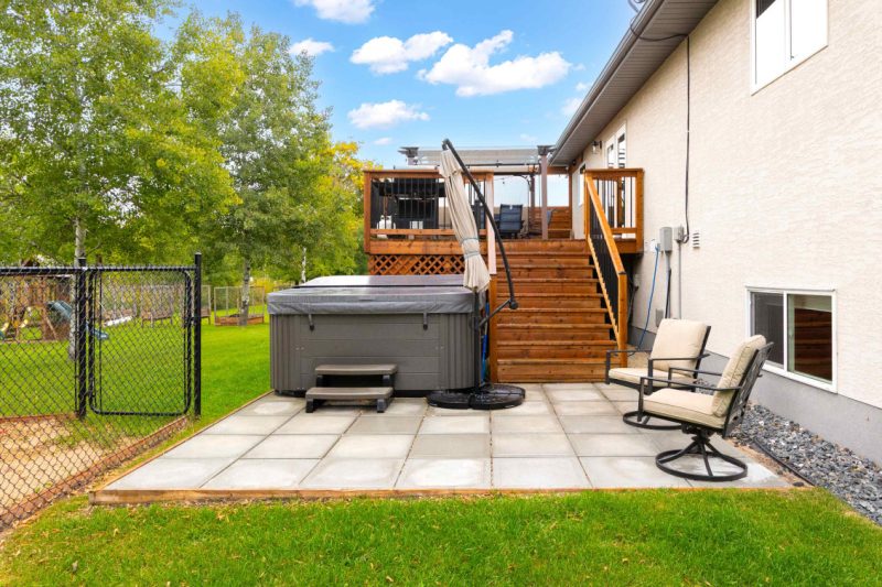 Looking for a well maintained home with upgrades? Look no further! This lovely 4 bedroom home is sure to please! The main floor features luxury hardwood floors and vaulted ceiling throughout. The white kitchen has upgraded quartz countertops and backsplash for a sleek look. There are 2 bedrooms on the main floor, with the ensuite featuring a walk in shower. Moving downstairs, there is a kitchenette, rec room, 2 additional bedrooms, laundry and 3 piece bath with shower. This is a great space to host a movie night, or for elderly parents / adult kids to enjoy. Heated garage. A/C. Acrylic stucco. Moving outside, note the paved driveway, beautifully landscaped yard with firepit area, dog run, garden boxes with water taps plumbed in, oversized shed and deck with pergola! This home is on the edge of Grunthal, so enjoy the view of no backyard neighbours! Main upgrades over the last 6 years: luxurious hardwood floors, some carpet, countertops in kitchen / baths, kitchen appliances, washer/dryer, Cvac, water softener, most blinds, ensuite shower, downstairs shower, garden boxes, front door, t-bar ceiling and LED lighting in the basement rec room. Call to view!