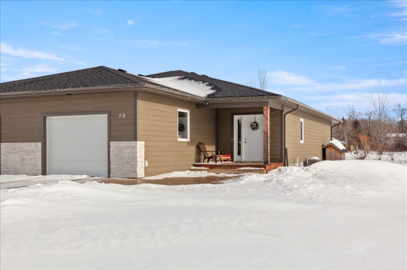 Incredible opportunity to own a 6 year old attached home in Mitchell! Have a look at this 2 bedroom home with one level living. There is quality finishing including triple pane windows The white kitchen has a corner pantry, soft close cabinetry and center island. Vinyl plank flooring throughout. Storage room and laundry room. Concrete driveway, deck, AC, all appliances included. Attached finished garage. Senior friendly, or great for first time home buyer, or investment property! Quiet neighbourhood! Hurry!
