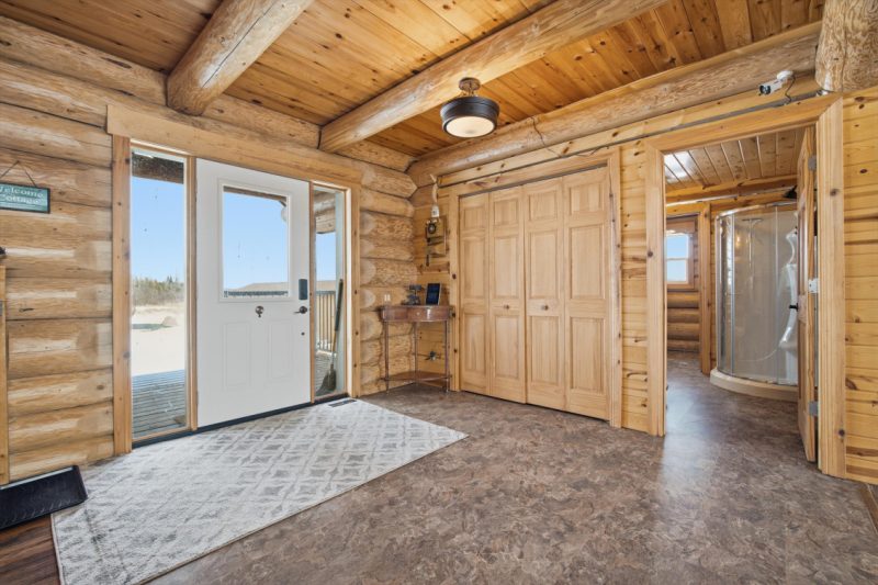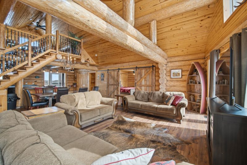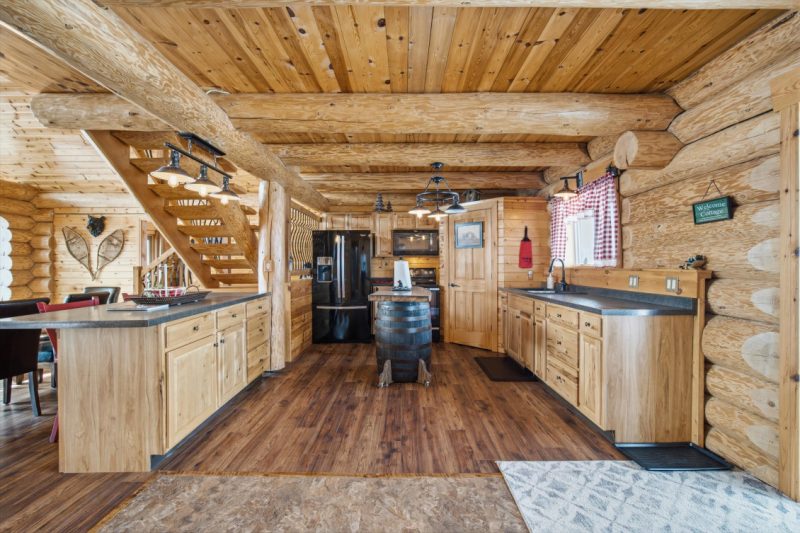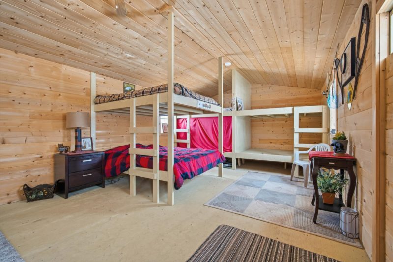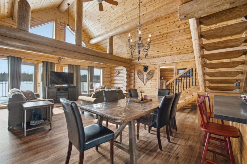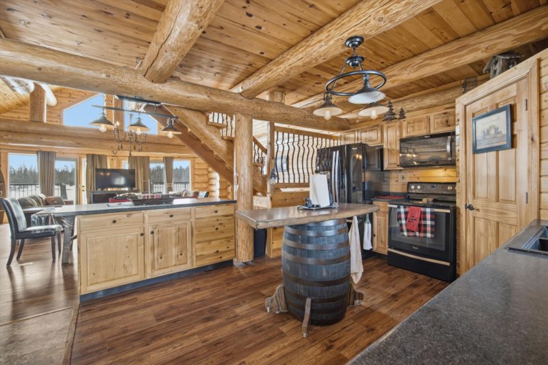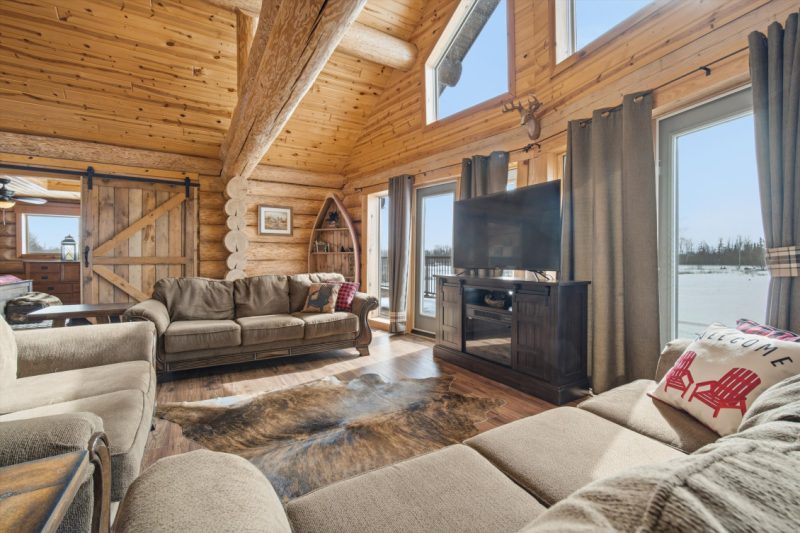 Escape to the beauty of Falcon West Estates with this exceptional waterfront log cabin. This stunning cabin offers a warm and inviting atmosphere, highlighted by soaring vaulted ceilings, exposed wood beams, and breathtaking views of the water. Step inside to a cozy, rustic kitchen featuring a custom island perfect for gathering with family and friends. The open-concept living space is flooded with natural light and showcases the craftsmanship and character of this beautiful home. A spacious loft adds flexibility for additional sleeping or a quiet getaway space. The primary bedroom is a true sanctuary, complete with a walk-in closet and direct access to the deck. Outside, the property continues to impress with a double detached garage with workshop and wood stove, perfect for hobbies or storage, along with a charming bunkhouse for guests, sleeps 6 with a cozy sitting area. Unwind in the barrel sauna after a day on the water, surrounded by nature. Being sold fully furnished and thoughtfully styled, this turnkey property is ready for you to enjoy. Whether you’re looking for a weekend escape or year-round living, this one-of-a-kind cabin delivers comfort, character, and unforgettable views.